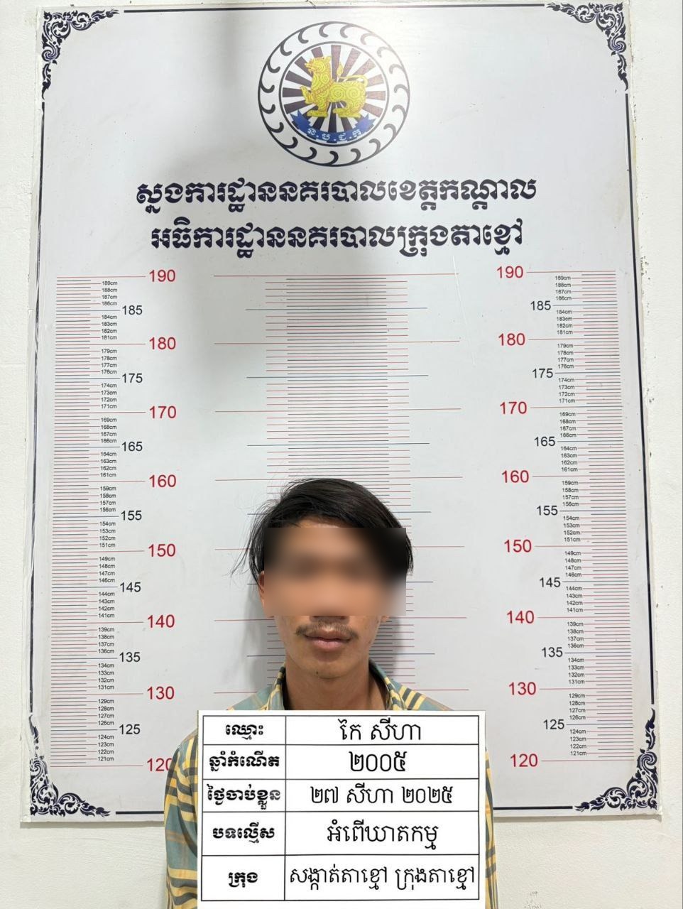 កណ្ដាល៖ ករណីឃាតកម្មដ៏កម្រមួយបានកើតឡើងនៅក្រុងតាខ្មៅ ខណៈដែលបុរសជាប្ដីបានច្របាច់កប្រពន្ធរបស់ខ្លួនរហូតដល់ស្លាប់ ហើយបានចូលខ្លួនទៅសារភាពប្រាប់សមត្ថកិច្ច។ ហេតុការណ៍នេះបានកើតឡើងនៅថ្ងៃទី២៧ សីហា ២០២៥ វេលាម៉ោង ១៦:២៦នាទី នៅបន្ទប់ជួលមួយកន្លែងក្នុងភូមិតាខ្មៅ៣ សង្កាត់តាខ្មៅ ក្រុងតាខ្មៅ។