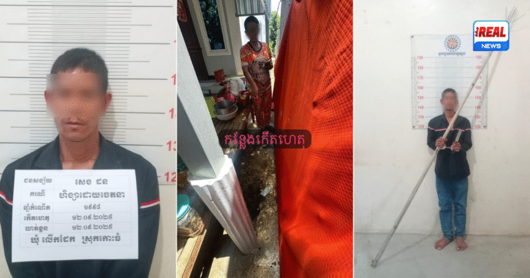 បុរសម្នាក់ដែលតែងតែរករឿងឈ្លោះប្រកែកជាមួយអ្នកជិតខាង បានប្រើអំពើហិង្សាដោយគប់កាំបិតតាំងតោទៅលើម្តាយនិងកូនស្រីរងគ្រោះ តែមិនត្រូវ។ ជនសង្ស័យរូបនេះត្រូវបានសមត្ថកិច្ចនគរបាលស្រុកកោះធំឃាត់ខ្លួន កាលពីថ្ងៃទី១២ កញ្ញា ២០២៥ នៅភូមិអន្លង់ស្លាត ឃុំលើកដែក ស្រុកកោះធំ ខេត្តកណ្ដាល។