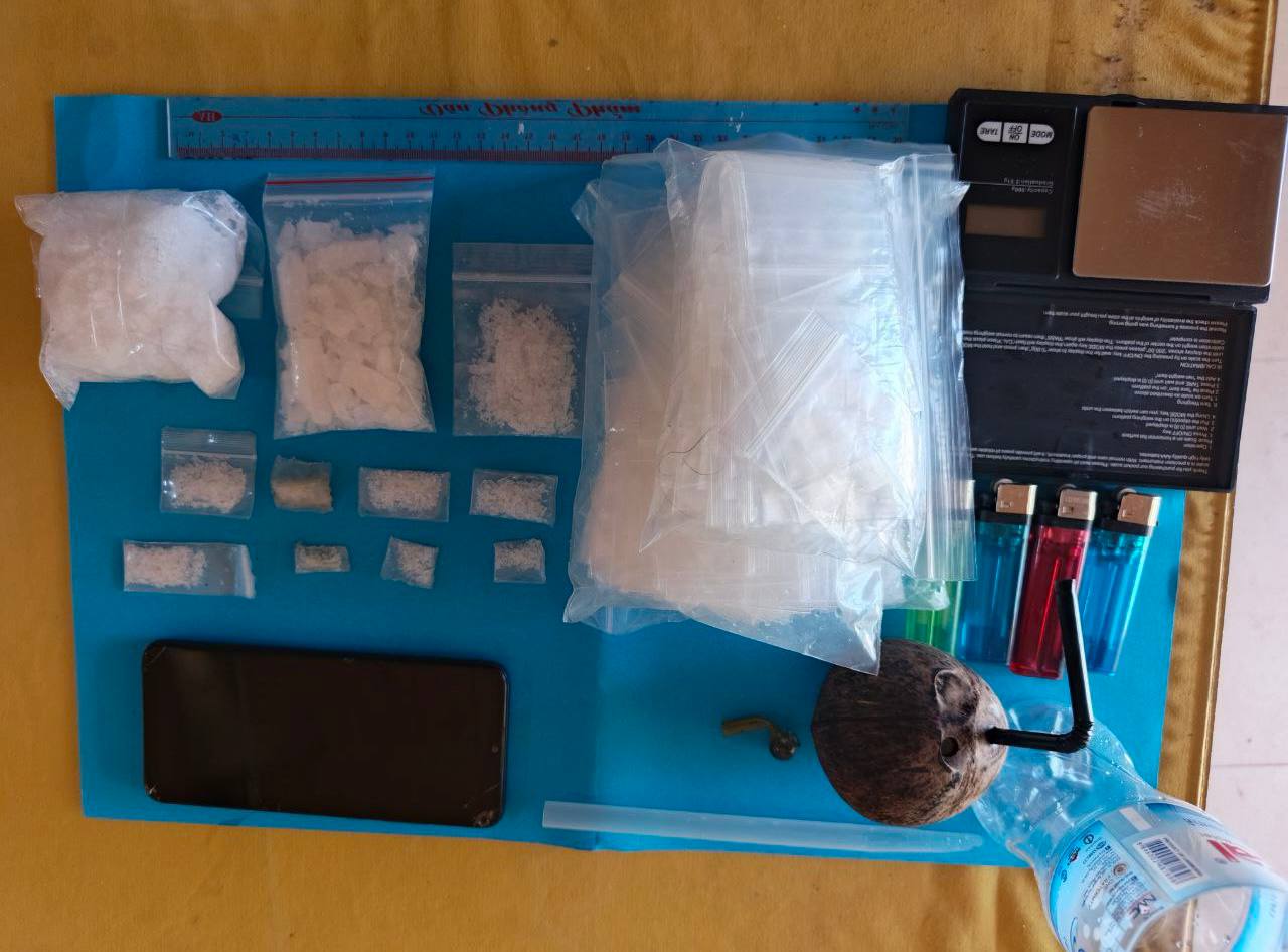 វត្ថុតាងសរុបដែលដកហូតបានមាន៖ ម្សៅក្រាមសថ្លាសង្ស័យជាសារធាតុញៀន (ម៉ាទឹកកក) ចំនួន ១១កញ្ចប់ (តូច ៨, មធ្យម ១, ធំ ២) ទម្ងន់ ១៤៥,៤៣ក្រាម, សម្ភារៈវេចខ្ចប់និងប្រើប្រាស់គ្រឿងញៀនមួយចំនួន, ជញ្ជីងថ្លឹងគ្រឿងញៀន ១, ម៉ូតូ ១គ្រឿង និងទូរសព្ទ ១គ្រឿងម៉ាក Samsung។
