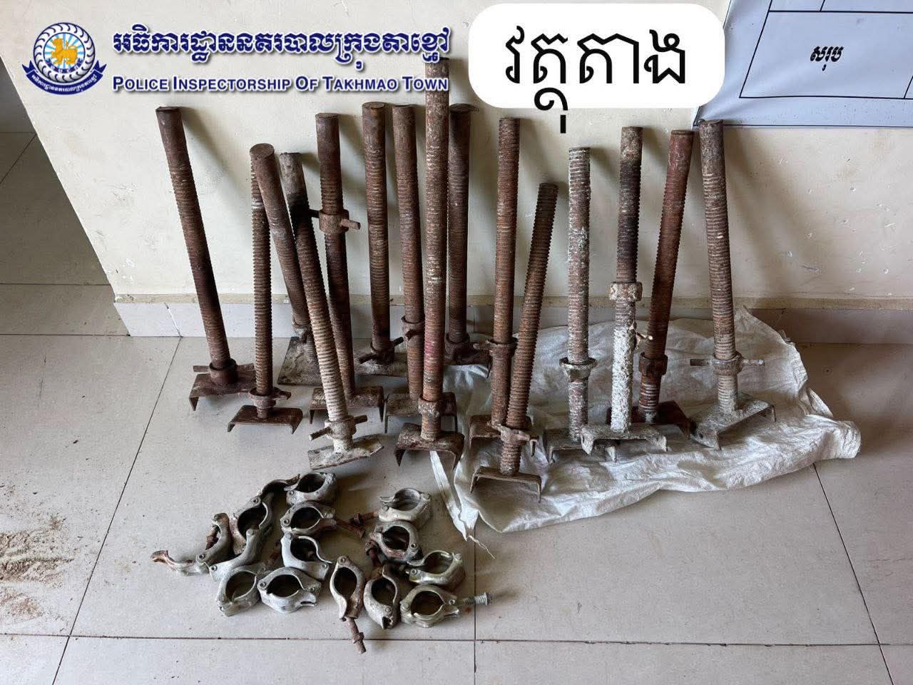 ក្មេងទំនើង ២នាក់ ដែលសកម្មក្នុងការលួចដែកសម្រាប់ធ្វើសំណង់ និងសំលៀកបំពាក់របស់ប្រជាពលរដ្ឋ ត្រូវបានកម្លាំងនគរបាលក្រុងតាខ្មៅឃាត់ខ្លួនបាន។ ជនសង្ស័យទាំងពីរនាក់នេះ តែងតែធ្វើសកម្មភាពលួចដោយជិះកង់នៅតាមមូលដ្ឋានមួយចំនួននៃក្រុងតាខ្មៅ។ ប្រតិបត្តិការឃាត់ខ្លួននេះបានធ្វើឡើងកាលពីថ្ងៃទី២៣ កញ្ញា ២០២៥។