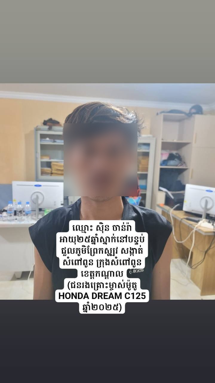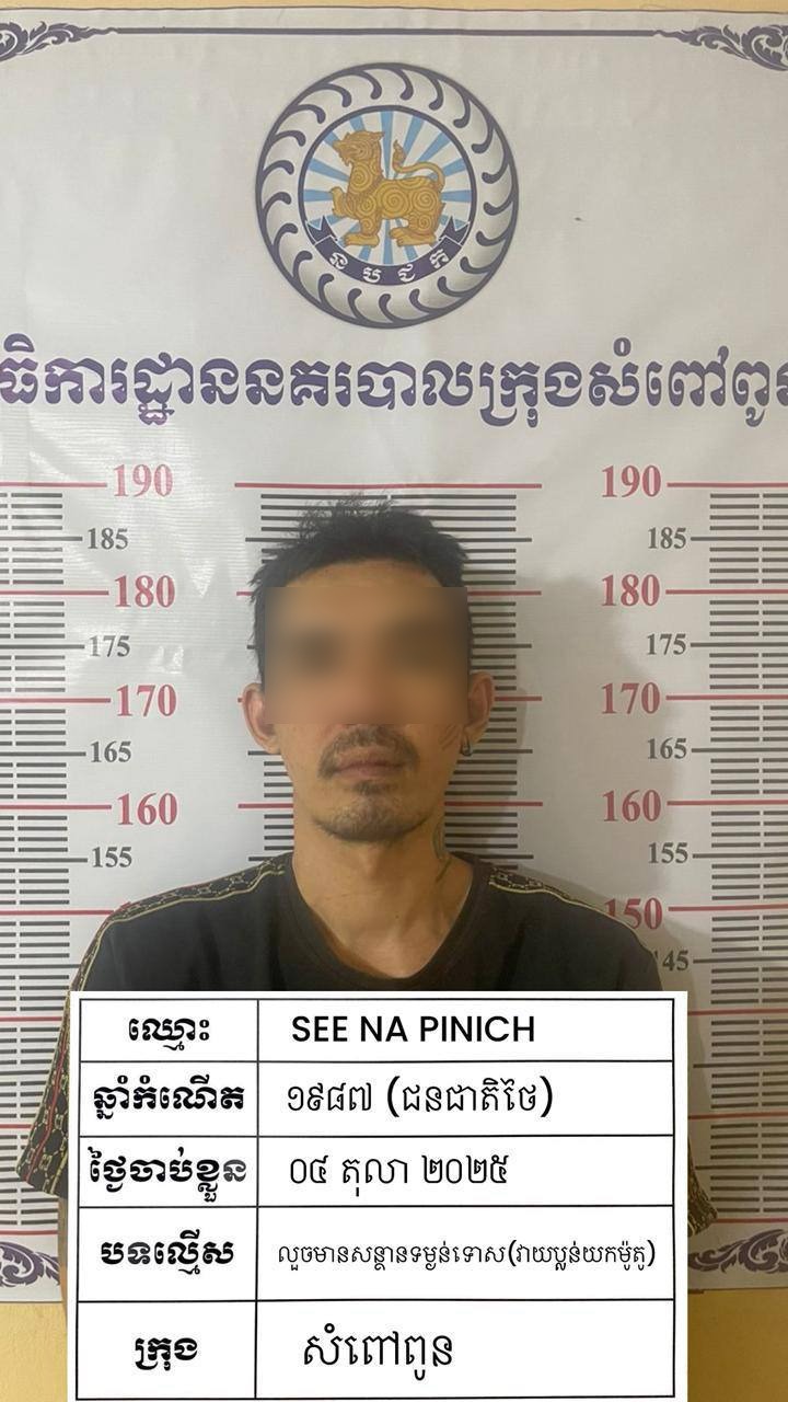 បុរសជនជាតិថៃ ២នាក់ ដែលជាបុគ្គលិកក្រុមហ៊ុន បានធ្វើសកម្មភាពវាយប្លន់យកម៉ូតូរបស់ប្រជាពលរដ្ឋក្នុងពេលរាត្រី។ ករណីនេះបានកើតឡើងនៅយប់ថ្ងៃទី៤ ខែតុលា ឆ្នាំ២០២៥ នៅមុខក្រុមហ៊ុនព្រីនស៍០១ ស្ថិតក្នុងភូមិព្រែកស៊ឹង សង្កាត់សំពៅពូន ក្រុងសំពៅពូន ខេត្តកណ្ដាល ហើយជនសង្ស័យទាំងពីរនាក់ត្រូវបានសមត្ថកិច្ចឃាត់ខ្លួនបានភ្លាមៗ។