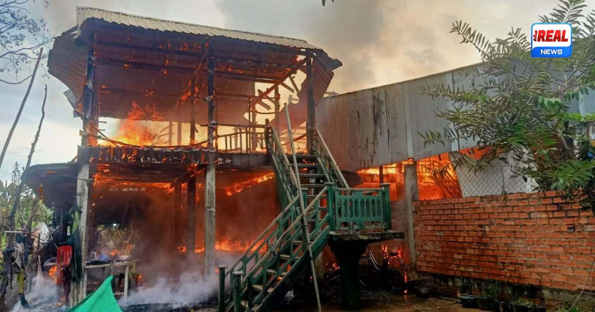 ប្រភពដដែលបានបន្តថា ផ្ទះទាំងពីរខ្នងមានទំហំ ៥ម x ៧ម ដែលជាផ្ទះឈើលើថ្មក្រោម ដំបូលប្រក់ស័ង្កសី។ ករណីឆាបឆេះនេះត្រូវបានគេសន្និដ្ឋានថា បណ្តាលមកពីការទុស្សេខ្សែភ្លើង ហើយបានបណ្តាលឲ្យខូចខាតទ្រព្យសម្បត្តិជាច្រើន។