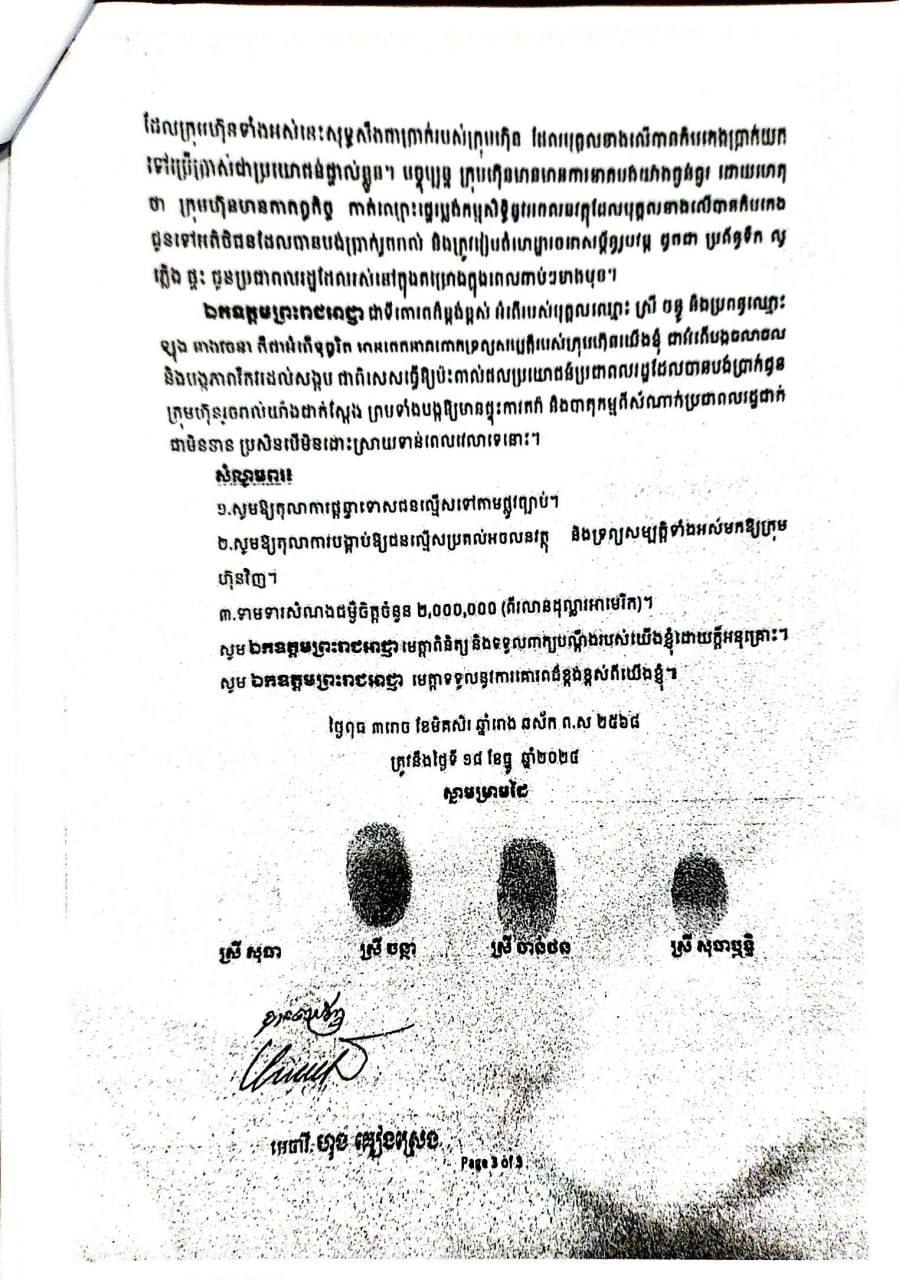 យើងខ្ញុំមានភស្តុតាងបង្ហាញភាពស្អាតស្អំរបស់យើងខ្ញុំ គឺដីកាសម្រេចតម្កល់រឿងទុកឥតចាត់ការ លេខ ២៩២ អ.យ.ញ ចុះថ្ងៃទី១០ ខែមីនា ឆ្នាំ២០២៥ របស់អយ្យការអមសាលាដំបូងរាជធានីភ្នំពេញ និងសេចក្តីសម្រេចតម្កល់ដីកាតម្កល់រឿងទុកឥតចាត់ការ លេខ ២៧៦ ស.ត.ប្រក ០២៥ ចុះថ្ងៃទី២៦ ខែមិថុនា ឆ្នាំ២០២៥ របស់មហាអយ្យការអមសាលាឧទ្ធរណ៍ភ្នំពេញ ដោយការចោទប្រកាន់យើងខ្ញុំថាបានធ្វើការកិបកេងប្រាក់ក្រុមហ៊ុន ប៉ុន្តែពួកគាត់ពុំមានភស្តុតាង និងពុំមានឯកសារជាក់លាក់ រឺកិច្ចសន្យាណាមួយដែលបានប្រគល់ប្រាក់ឲ្យយើងខ្ញុំយកទៅទិញដីទាំងនោះឡើយ។ ផ្ទុយទៅវិញមានតែគាត់ដែលទទួលប្រាក់ពីយើងខ្ញុំ ដើម្បីជាសាហ៊ុយនៃការធ្វើប័ណ្ណដី (ប្លង់រឹង) ឲ្យយើងខ្ញុំតែប៉ុណ្ណោះ។