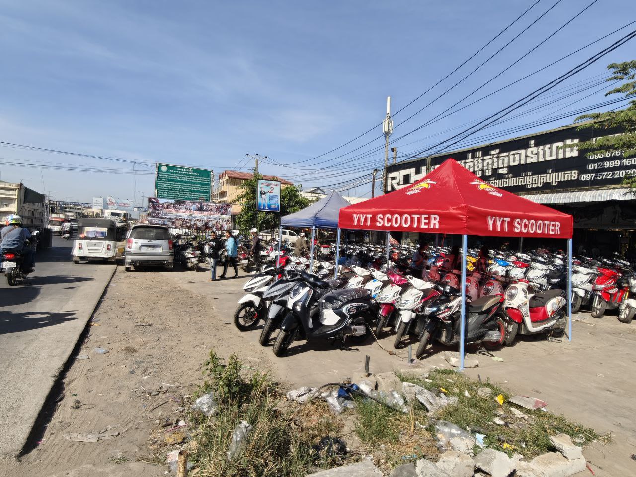 ជាក់ស្ដែងនៅថ្ងៃទី៤ មករា ២០២៦ នេះ គេសង្កេតឃើញថា ហាងលក់ម៉ូតូខាងលើបានដំឡើងតង់ពណ៌ក្រហមដែលមានសរសេរអក្សរ YYT SCOOTER និងតាំងម៉ូតូជាច្រើនគ្រឿងពេញលើចិញ្ចើមផ្លូវ និងគ្របដណ្តប់លើខ្នងប្រឡាយលូសាធារណៈ ដែលធ្វើឲ្យបាត់បង់សោភ័ណភាព និងប៉ះពាល់ដល់ការធ្វើដំណើររបស់ប្រជាពលរដ្ឋ។ មិនតែប៉ុណ្ណោះ ហាងលក់ម៉ូតូមួយនេះថែមទាំងបានយកម៉ូតូជាច្រើនគ្រឿងទៅដាក់តាំងនៅក្រោមស្ពានអាកាសចោមចៅ ដើម្បីថតវីដេអូផ្សព្វផ្សាយពាណិជ្ជកម្មលក់ម៉ូតូរបស់ខ្លួនបានយ៉ាងរលូន តាមបណ្ដាញសង្គមហ្វេសប៊ុក ថែមទៀតផង។