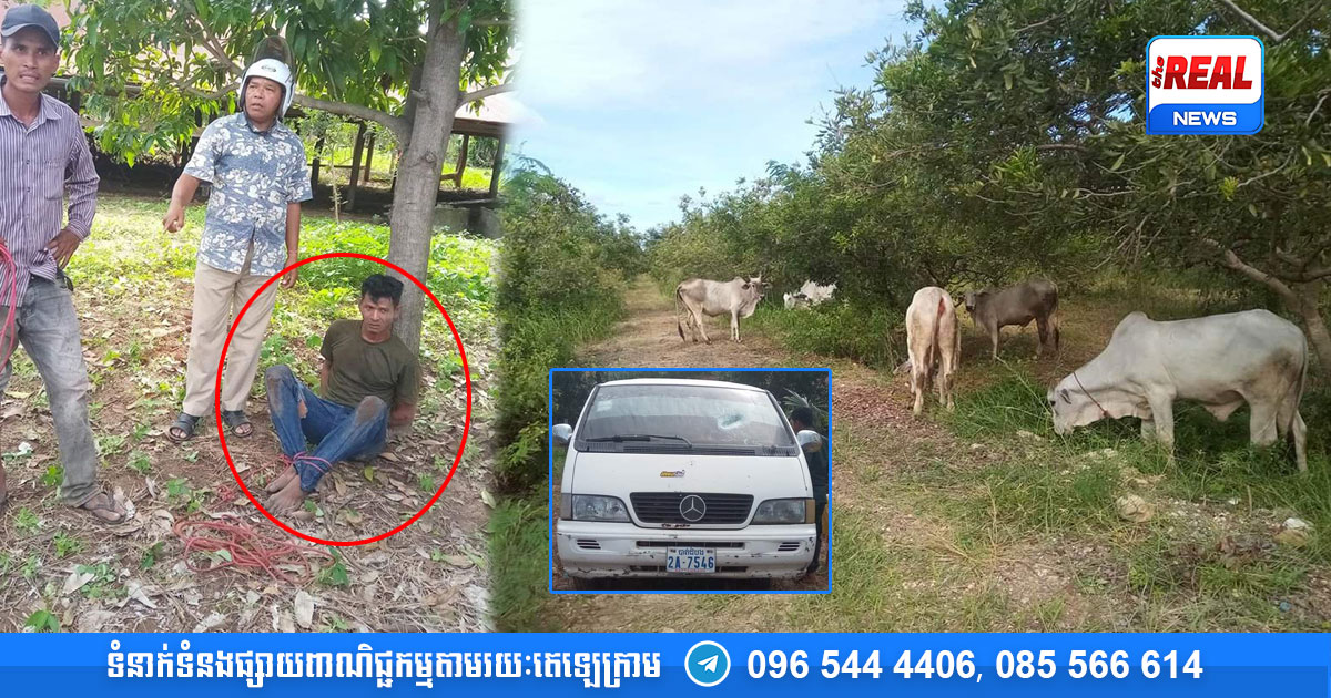 បើតាមសម្តីម្ចាស់គោបានឲ្យដឹងថា នៅថ្ងៃកើតហេតុ ខ្លួនបានបញ្ចេញ ៦ក្បាល យកទៅចងឲ្យស៊ីស្មៅ នៅចំណុចភូមិសាស្ត្រខាងលើ លុះក្រោយមកបាត់មិនឃើញ ក៏នាំគ្នាពីរនាក់ប្តីប្រពន្ធជិះម៉ូតូស្វែងរក ស្រាប់តែប្រទះឃើញជនសង្ស័យម្នាក់  កំពុងយាមនៅច្រកចូលចម្ការ ក៏បានសួរនាំ ដោយខាងជនសង្ស័យបានឆ្លើយថា គោទៅលិចហើយ ក្នុងពេលដំណាលគ្នានោះ សត្វគោឮសូរសំឡេងម៉ាស៊ីនម៉ូតូស្ដាប់ស្គាល់ ក៏បានអើតក រត់ចេញពីព្រៃបង្ហាញខ្លួនឲ្យម្ចាស់ឃើញដូចបំណងមែន ភ្លាមនោះពួកខ្លួនជាម្ចាស់គោបានស្រែកឆោឡោឡើង រកបងប្អូនកំពុងធ្វើដំណើរតាមផ្លូវជួយចាប់ចោរផង និងទូរស័ព្ទទៅរកកម្លាំងមានសមត្ថកិច្ចផង ឃើញសភាពការណ៍ដូចនេះ ជនសង្ស័យម្នាក់បានលោតចុះពីឡាន រួមជាមួយបក្ខពួកម្នាក់ទៀតដែលកំពុងគៀងគោ បានរត់ចូលព្រៃបាត់ នៅសល់តៃកុងឡានម្នាក់ដែលថយឡានមកពីក្នុងយ៉ាងលឿន និងបានជ្រុលឆ្លងទៅម្ខាងផ្លូវកៅស៊ូ បណ្តាលឲ្យធ្លាក់ក្នុងប្រព័ន្ធប្រឡាយ ក៏ត្រូវបានប្រជាពលរដ្ឋ រួបរួមគ្នាចាប់បានតែម្តង ។