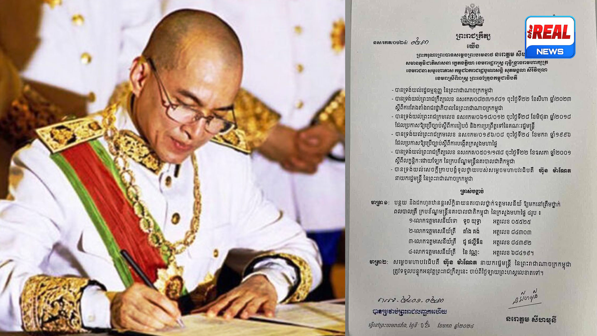 នេះបើយោងតាមព្រះរាជក្រឹត្យ ដែលបណ្តាញសារព័ត៌មាន The Real ទទួលបាននៅព្រឹកថ្ងៃទី០៦ ខែមករា ឆ្នាំ២០២៤ នេះ ។