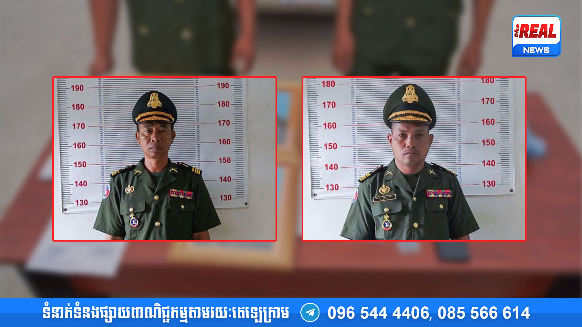 ជនសង្ស័យ ២នាក់ ត្រូវបានកម្លាំងកងរាជអាវុធហត្ថខេត្តបាត់ដំបង ដឹកនាំដោយលោកវរសេនីយ៍ឯក ហួត សុភាព មេបញ្ជាការរងទទួលការងារស្រាវជ្រាវព័ត៌មានសន្ដិសុខ ចុះបង្ក្រាបឃាត់ខ្លួន កាលពីថ្ងៃទី១៨ ខែមីនា ឆ្នាំ២០២៤ ស្ថិតភូមិព្រៃសង្ហា ឃុំខ្នាចរមាស ស្រុកបវេល ខេត្តបាត់ដំបង ពាក់ព័ន្ធករណីប្រើប្រាស់ឯកសណ្ឋាន និងក្លែងបន្លំឯកសារកងទ័ព ។