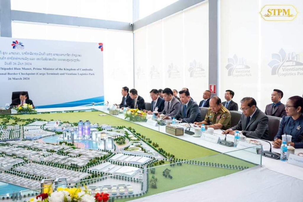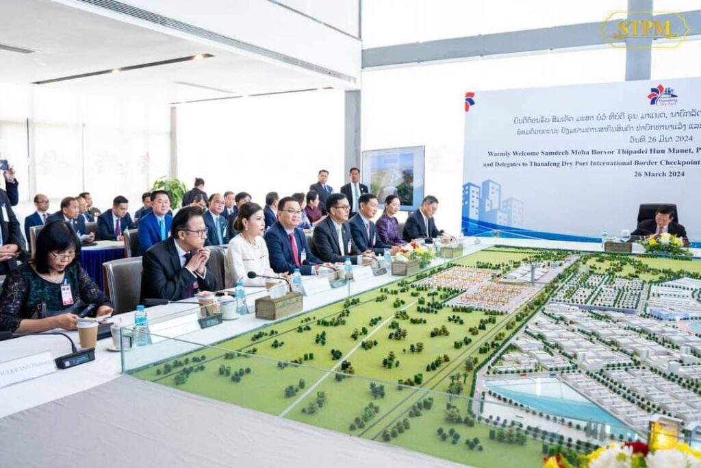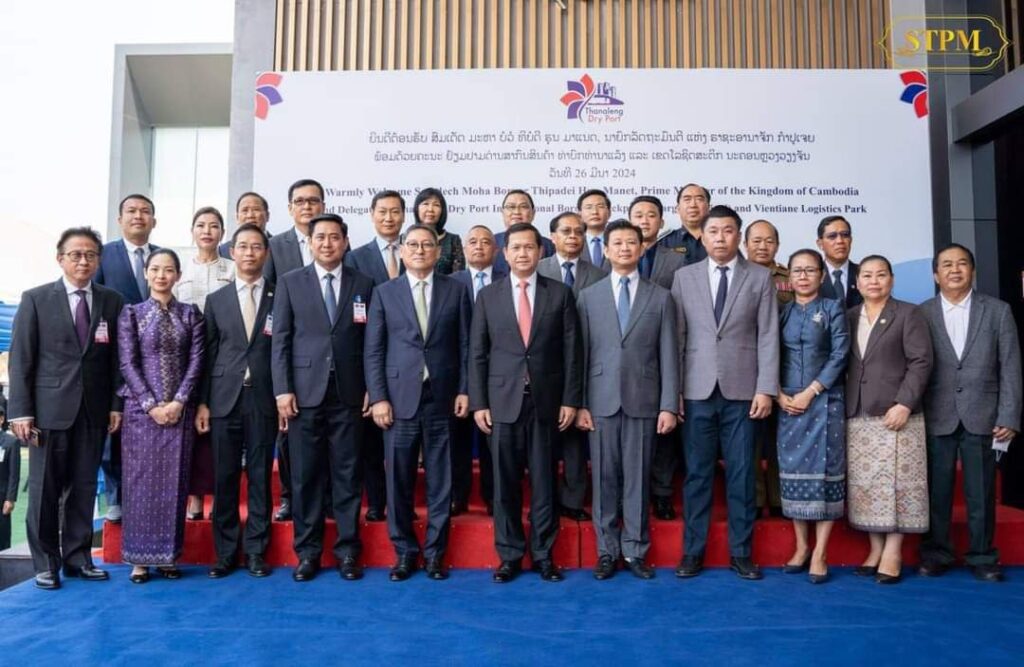 Share Telegram Facebook WhatsApp Pinterest Twitter Email Copy Link នៅព្រឹកថ្ងៃទី ២៦ ខែមីនា ឆ្នាំ ២០២៤ សម្តេចមហាបវរធិបតី ហ៊ុន ម៉ាណែត នាយករដ្ឋមន្ត្រី នៃព្រះរាជាណាចក្រកម្ពុជា បានអញ្ជើញចូលរួមទស្សនាកំពង់ផែស្ងួត Thanaleng Dry Port International Border Checkpoint (Cargo Terminal) និង Vientiane Logistic Park ។