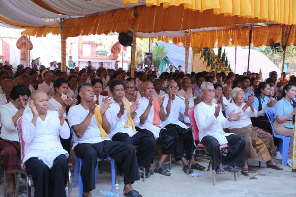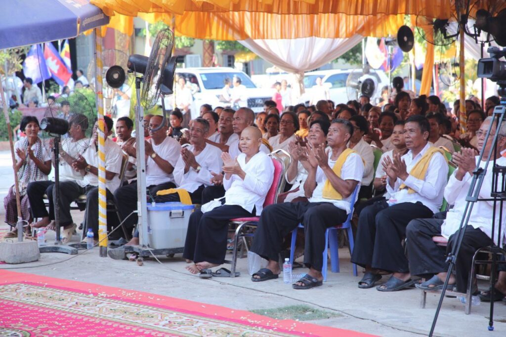ការប្រកាសគាំទ្រយ៉ាងពេញទំហឹងរបស់មន្ត្រីរាជការ កងម្លាំង និងប្រជាពលរដ្ឋ ធ្វើឡើងក្នុងពិធីបុណ្យឆ្លងមហាកុដិ សមិទ្ធផលនានា និងស្រោចស្រពសុគន្ធវារី ព្រះចៅអធិការវវត្តកែវមុនីវ័ន ស្ថិតនៅភូមិព្រែកឬស្ស ឃុំសំបួរមាស ស្រុកមុខកំពូល ខេត្តកណ្តាល ក្រោមអធិបតីភាពឯកឧត្ដម នូ សាខន ប្រធានក្រុមប្រឹក្សាខេត្ត និងឯកឧត្ដម គង់ សោភ័ណ្ឌ អភិបាល នៃគណៈអភិបាលខេត្តកណ្ដាល នារសៀលថ្ងៃទី២៧ ខែមេសា ឆ្នាំ២០២៤ ។