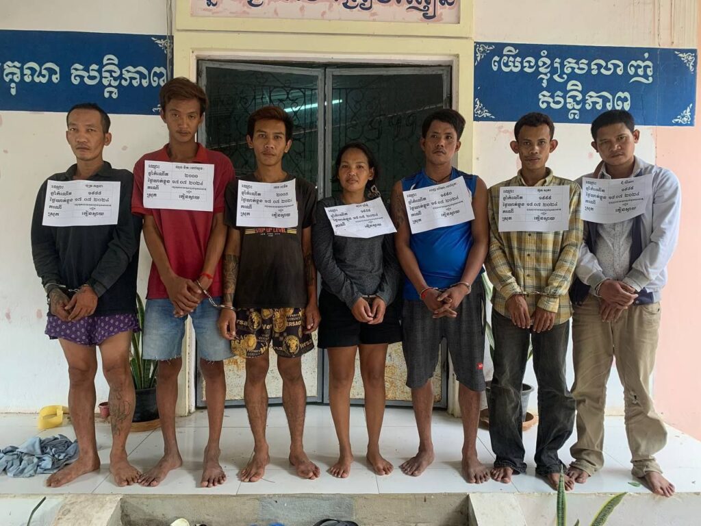 លោកវរសេនីយ៍ឯក ព្រុំ សំណាង អធិការនគរបាលស្រុកកៀនស្វាយបានឲ្យដឹងថា ជនសង្ស័យទាំង ៧នាក់ ដែលត្រូវបានកម្លាំងរបស់លោកឃាត់ខ្លួនខាងលើ ទី១-ឈ្មោះ បុត្រ កក្កដា ភេទប្រុស អាយុ ៣៦ឆ្នាំ (ខ្មែរ) មុខរបរ កម្មករ រោងចក្រ មានទីលំនៅ ភូមិស្តៅកន្លែង២ ឃុំដីឥដ្ឋ ស្រុកកៀនស្វាយ (ធ្លាប់ជាប់ពន្ធនាគារខេត្តកណ្តាល ៣ឆ្នាំ ពាក់ព័ន្ធនឹងគ្រឿងញៀន, ទី២-ឈ្មោះ ផេង ដេវីត ភេទប្រុស អាយុ ២១ ឆ្នាំ (ខ្មែរ) មុខរបរ មិនពិត  មានទីលំនៅ ភូមិស្តៅកន្លែង២ ឃុំដីឥដ្ឋ ស្រុកកៀនស្វាយ, ទី៣- ឈ្មោះ ឈុន និត (ហៅឃួច) ភេទប្រុស អាយុ ២៤ ឆ្នាំ (ខ្មែរ) មុខរបរ មិនពិត មានទីលំនៅ ភូមិស្តៅកន្លែង ឃុំដីឥដ្ឋ ស្រុកកៀនស្វាយ, ទី៤-ឈ្មោះ ពេញ ចរិយា (ហៅពូក) ភេទប្រុស អាយុ ៣៤ ឆ្នាំ (ខ្មែរ) មុខរបរ មិនពិត មានទីលំនៅ ភូមិព្រែកថ្មី សង្កាត់ព្រែកថ្មី ខណ្ឌច្បារអំពៅ ​(ធ្លាប់ជាប់ពន្ធនាគារខេត្តកណ្តាល ​៣ឆ្នាំ ), ទី៥-ឈ្មោះ អ៊ុក សុភា ភេទប្រុស អាយុ ២៥ឆ្នាំ (ខ្មែរ) មុខរបរ មិនពិត មានទីលំនៅ ភូមិព្រែកថ្មី សង្កាត់ព្រែកថ្មី ខណ្ឌច្បារអំពៅ, ទី៦- ឈ្មោះ ជុំ លីណា ភេទប្រុស អាយុ ៣៥ឆ្នាំ (ខ្មែរ) មុខរបរ ជាងភ្លើង មានទីលំនៅ ភូមិព្រែកថ្មី សង្កាត់ព្រែកថ្មី ខណ្ឌច្បារអំពៅ និងទី៧-ឈ្មោះ ឡាង ស្រីមុំ ភេទស្រី អាយុ ៣៥ ឆ្នាំ (ខ្មែរ) មុខរបរ មិនពិត មានទីលំនៅ ភូមិរទាំងត្បូង ឃុំភូមិធំ ស្រុកកៀនស្វាយ ខេត្តកណ្តាល ។