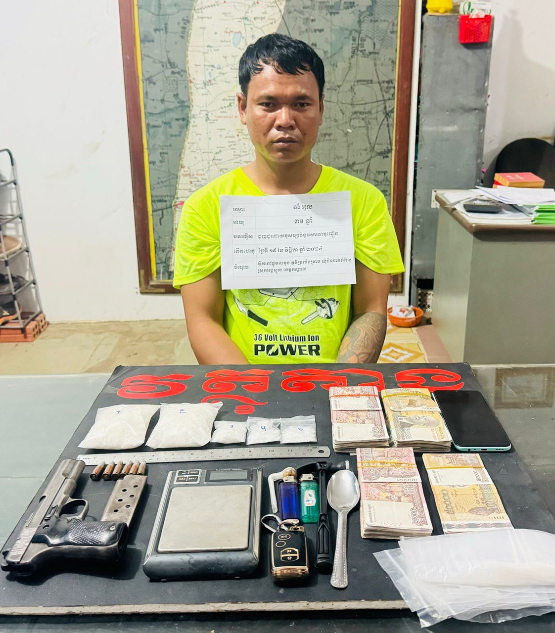 ជនសង្ស័យមុខសញ្ញាជួញដូរគ្រឿងញៀនម្នាក់ ត្រូវបានកម្លាំងនគរបាលប៉ុស្តិ៍ចំនួន ៣ សហការជាមួយជំនាញ ធ្វើប្រដេញពួនស្ទាក់បង្ក្រាប និងឃាត់ខ្លួន ខណៈរូបគេនាំយកថ្នាំញៀនពីខេត្តកំពង់ស្ពឺ មកលក់ចែកចាយក្នុងភូមិសាស្ត្រស្រុកអង្គស្នួល ខេត្តកណ្តាល ។