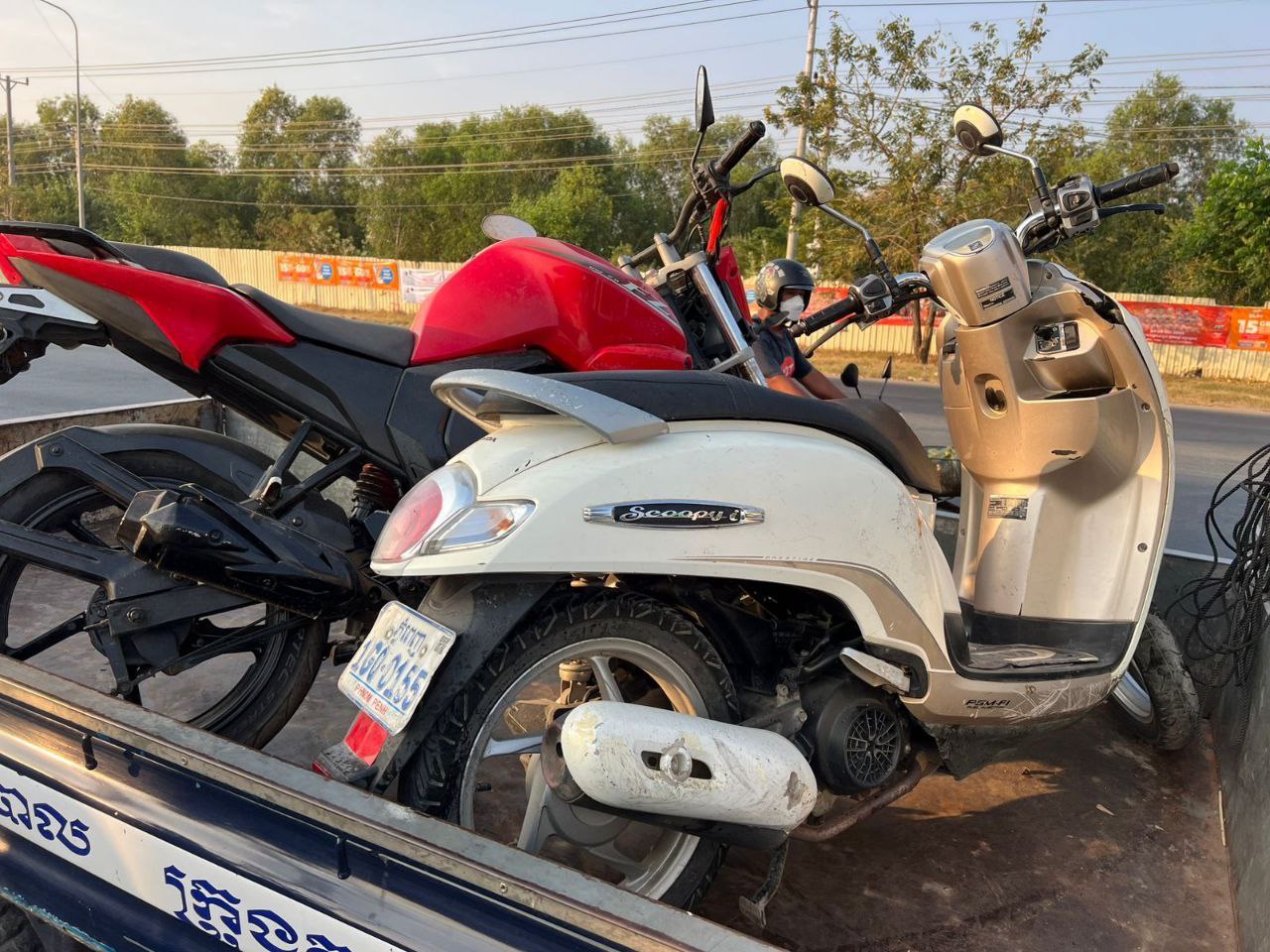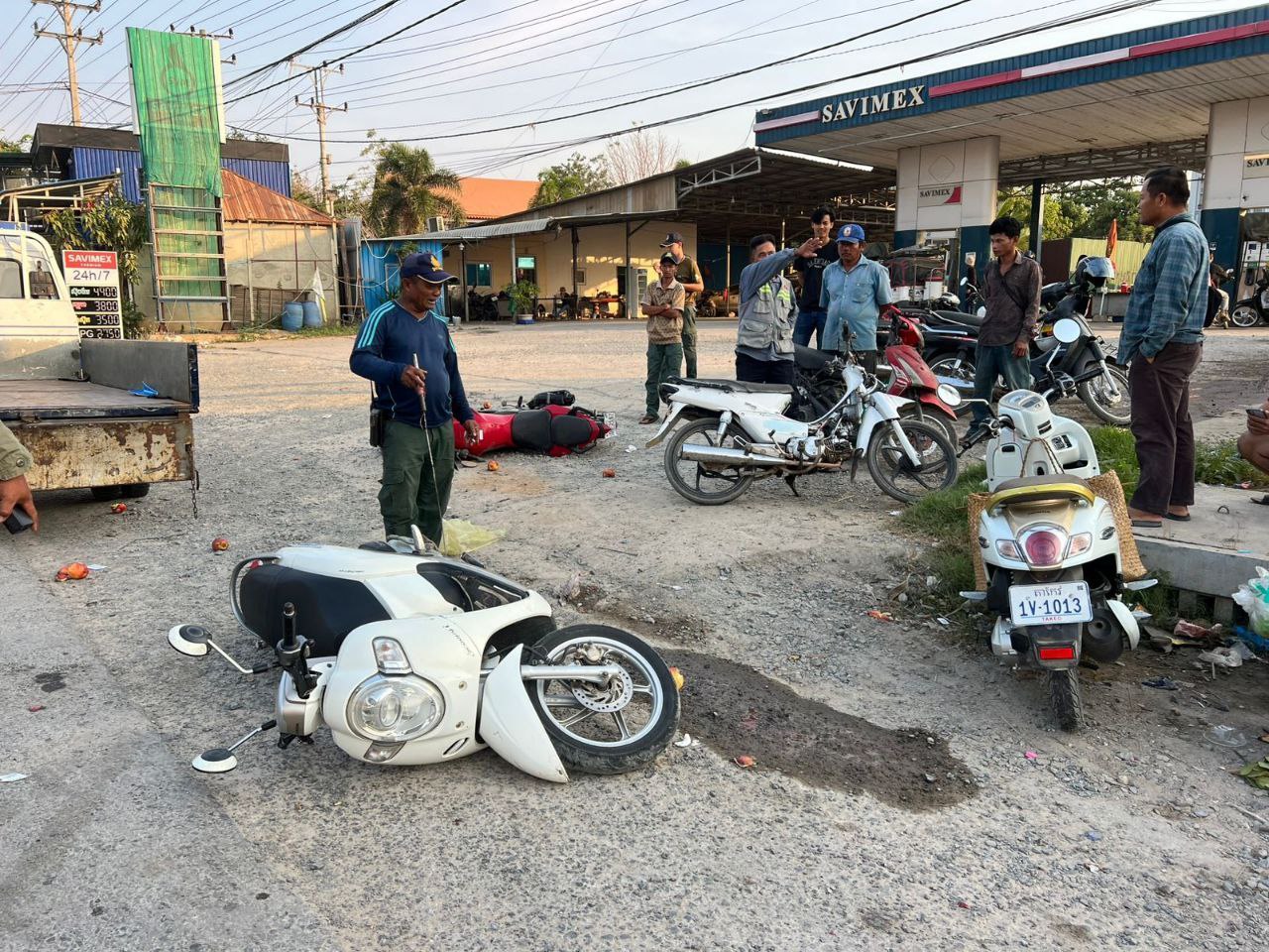 ប្រភពពីសមត្ថកិច្ចបានឱ្យដឹងថា នៅវេលាកើតហេតុខាងលើ មានម៉ូតូមួយគ្រឿងម៉ាក HONDA SCOOPY ពណ៌ស ពាក់ផ្លាកលេខភ្នំពេញ 1GQ-0155 បើកបរដោយឈ្មោះ សូយ ភឿន ភេទស្រី អាយុ ៣០ឆ្នាំ ស្នាក់នៅភូមិព្រែកសំរោង៣ សង្កាត់តាខ្មៅ ក្រុងតាខ្មៅ ជិះធ្វើដំណើតាមបណ្ដោយផ្លូវជាតិលេខ ២១អា មានទិសដៅពីជើងទៅត្បូង រួចបត់ឆ្វេងឆ្លងផ្លូវទៅកើត លុះដល់ចំណុចកើតហេតុក៌បានបុកជាមួយម៉ូតូមួយគ្រឿងទៀតម៉ាក YAMAHA FZ ពណ៌ក្រហម ពាក់ផ្លាកលេខភ្នំពេញ 1DB-2167 ពាក់មួកសុវត្ថភាព និងមានកញ្ចក់មើលក្រោយ អ្នកបើកបរមានឈ្មោះ សេន ស៊ាន ភេទប្រុស អាយុ ២៦ឆ្នាំ មានទីលំនៅភូមិលេខ១ ក សង្កាត់ស្វាយរលំ ក្រុងតាខ្មៅ រងរបួសស្រាល ត្រូវបានសាច់ញាតិដឹកទៅមន្ទីពេទ្យដោយខ្លួនឯង មានទិសដៅពី ត្បូង ទៅ ជើង ។ ចំណែកអ្នកបើកម៉ូតូម៉ាក HONDA SCOOPY រងរបួសធ្ងន់ត្រូវបានសាច់ញាតិដឹកតាម PASS APP យកទៅមន្ទីពេទ្យដោយខ្លួនឯង ។