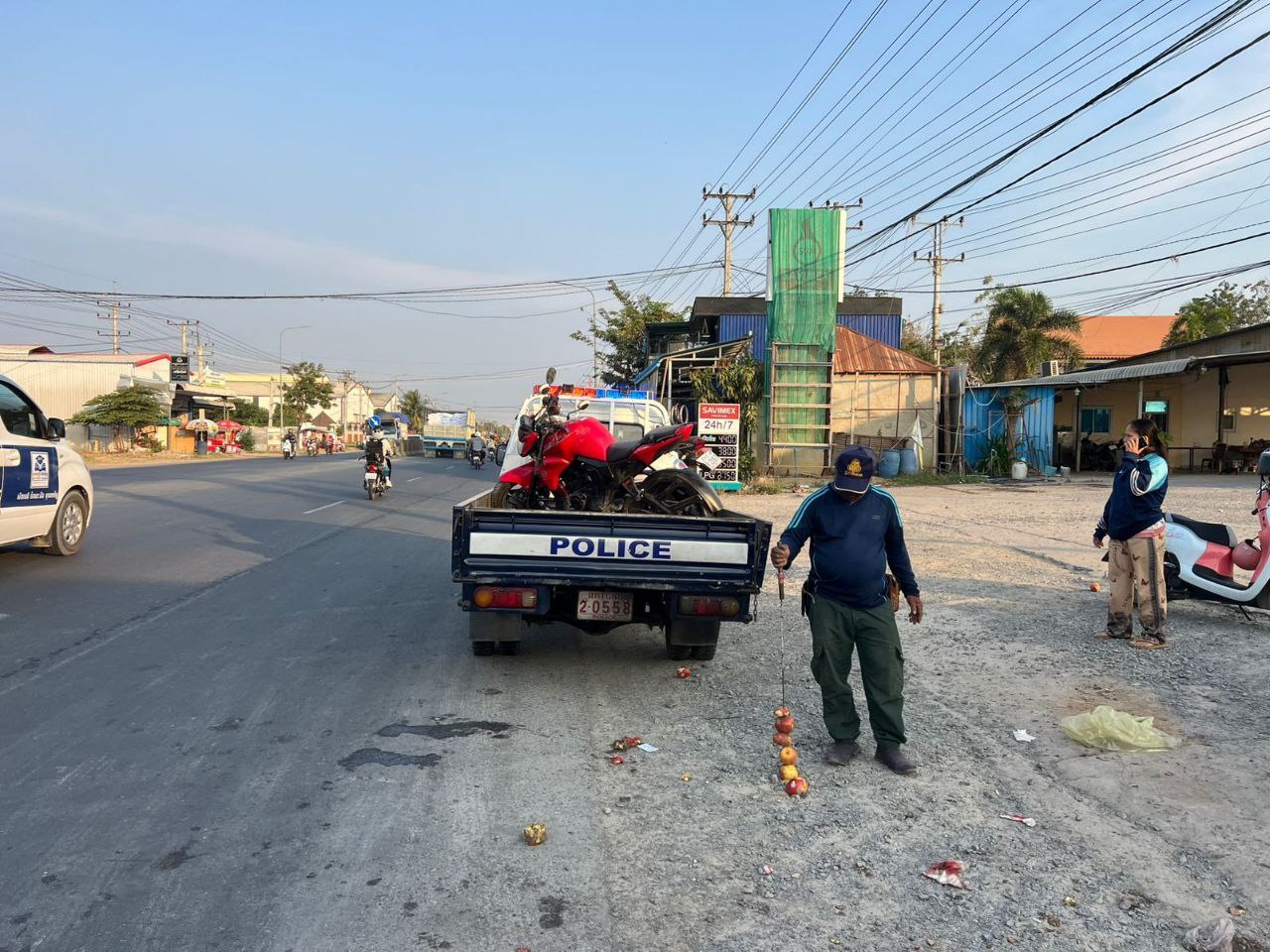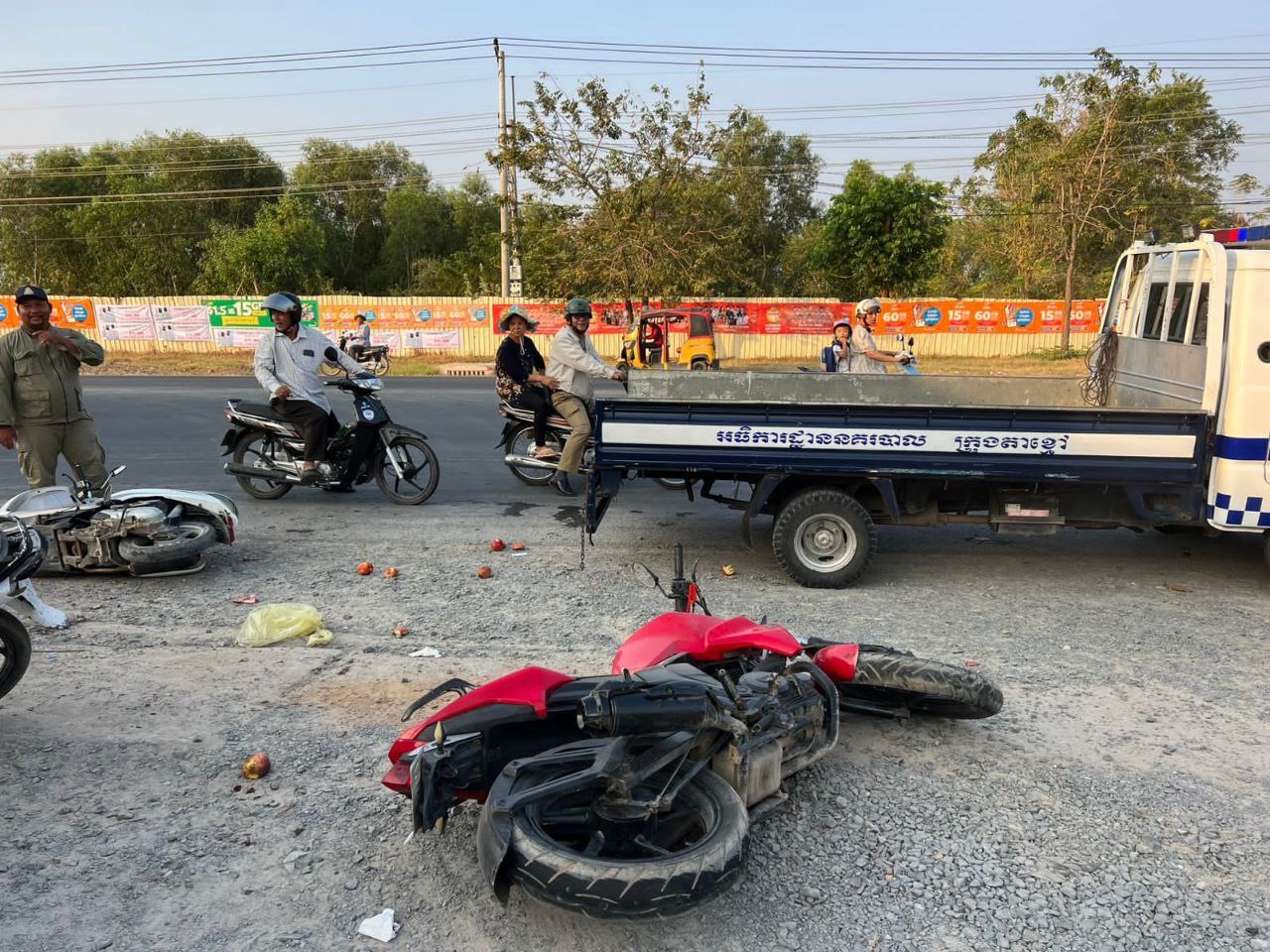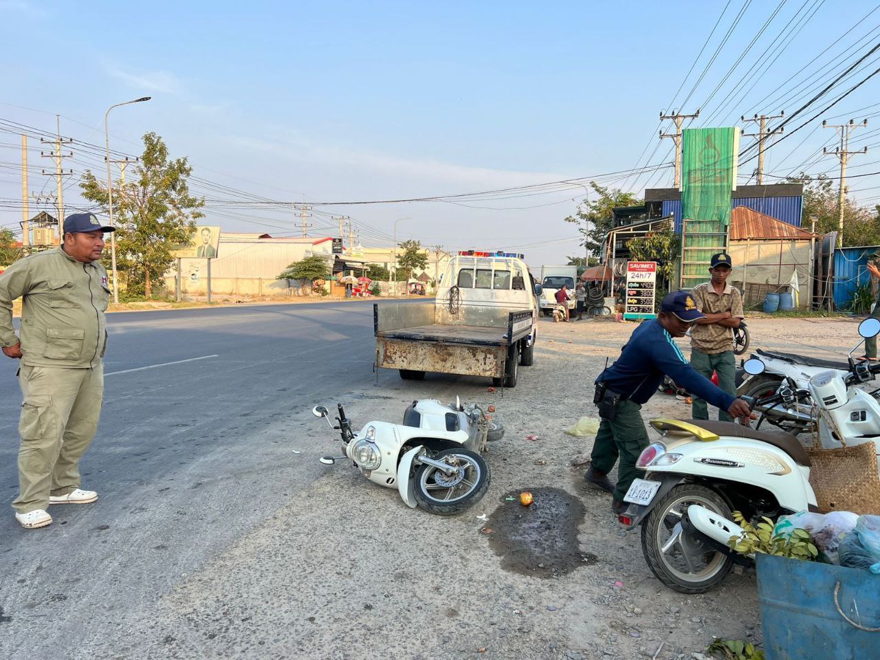 មនុស្សប្រុស-ស្រី ពីរនាក់ បានរងរបួសធ្ងន់-ស្រាល ដោយគ្រោះថ្នាក់ចរាចរណ៍រវាងម៉ូតូធំ ជាមួយម៉ុតូស្កូពី កាលពីវេលាម៉ោងជាង ៧ព្រឹក ថ្ងៃទី២៧ មករា ២០២៥ នៅចំណុចខាងមុខការាសសាំង សាវីមុិច លើផ្លូវជាតិលេខ២១ កែងផ្លូវបេតុង ស្ថិតនៅភូមិលេខ១ (ក) សង្កាត់ស្វាយរលំ ក្រុងតាខ្មៅ ខេត្តកណ្ដាល។