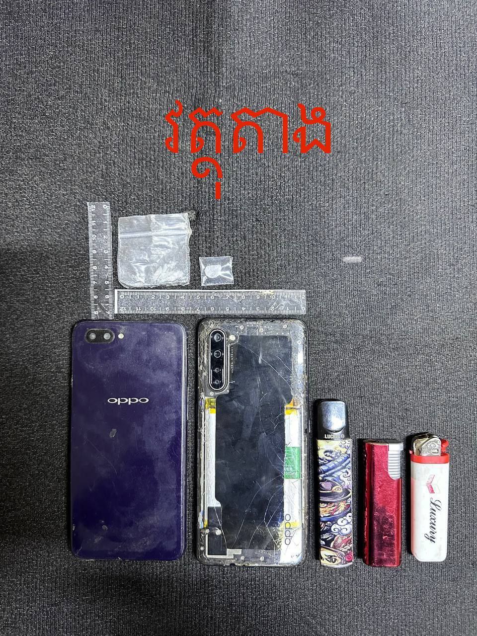 សមត្ថកិច្ចបានឲ្យដឹងថា ជនសង្ស័យ ២នាក់ខាងលើ ទី១ ឈ្មោះ ប៊ិន ចាន់វាសនា ហៅ ម៉ៅ ភេទប្រុស អាយុ ៤២ ឆ្នាំ ជនជាតិខ្មែរ មុខរបរ មិនពិត រស់នៅភូមិចិនដាំម្លូ សង្កាត់វាំងចាស់ ក្រុងឧដុង្គម៉ែជ័យ ខេត្តកំពង់ស្ពឺ ធ្លាប់ជាប់ពន្ធនាគារខេត្តកំពង់ស្ពឺ ០១លើក រយៈពេល ២ឆ្នាំពីបទហិង្សា និងទី២-ឈ្មោះ រី សុម៉ាលី ហៅ អ៊ួយ ភេទស្រី អាយុ ៣០ឆ្នាំ ជនជាតិខ្មែរ មុខរបរ មិនពិត រស់នៅភូមិប្រក់ក្ដា ឃុំវិហារលួង ស្រុកពញាឮ ខេត្តកណ្តាល ។ រីឯវត្ថុតាងរឹបអូសរួមមាន៖ សារធាតុញៀនមេតំហ្វេតាមីន (ICE) ០២ កញ្ចប់តូច, ទូរស័ព្ទដៃចំនួន ២គ្រឿង, បារីអេឡេចត្រូនីចចំនួន ០១ដើម(YOOZ), ដែកកេះចំនួន ០២ដើម និងម៉ូតូ ០១គ្រឿង ។