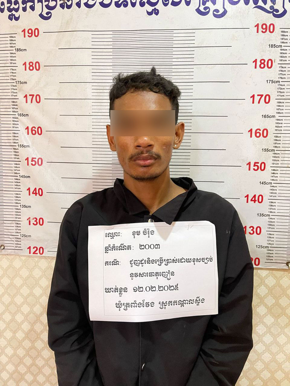 ជនសង្ស័យមានឈ្មោះ ខុម ចំរ៉ុង ភេទប្រុស អាយុ ២២ឆ្នាំ ជនជាតិខ្មែរ។ ការឃាត់ខ្លួននេះ កើតឡើងនៅថ្ងៃទី ១២ កុម្ភៈ ២០២៥ វេលាម៉ោងជាង ២រសៀល បន្ទាប់ពីប្រជាពលរដ្ឋជូនដំណឹងសមត្ថកិច្ចអំពីសកម្មភាពលក់គ្រឿងញៀនរបស់ជនសង្ស័យ។ ជាមួយនឹងការឃាត់ខ្លួន សមត្ថកិច្ចបានចាប់យកម្សៅក្រាមពណ៌សថ្លា សង្ស័យជាសារធាតុញៀនមេតំហ្វេតាមីន (Ice) ចំនួន ៣ កញ្ចប់ មានទម្ងន់ ០.៨៨ ក្រាម និងឧបករណ៍ប្រើប្រាស់មួយចំនួន ។