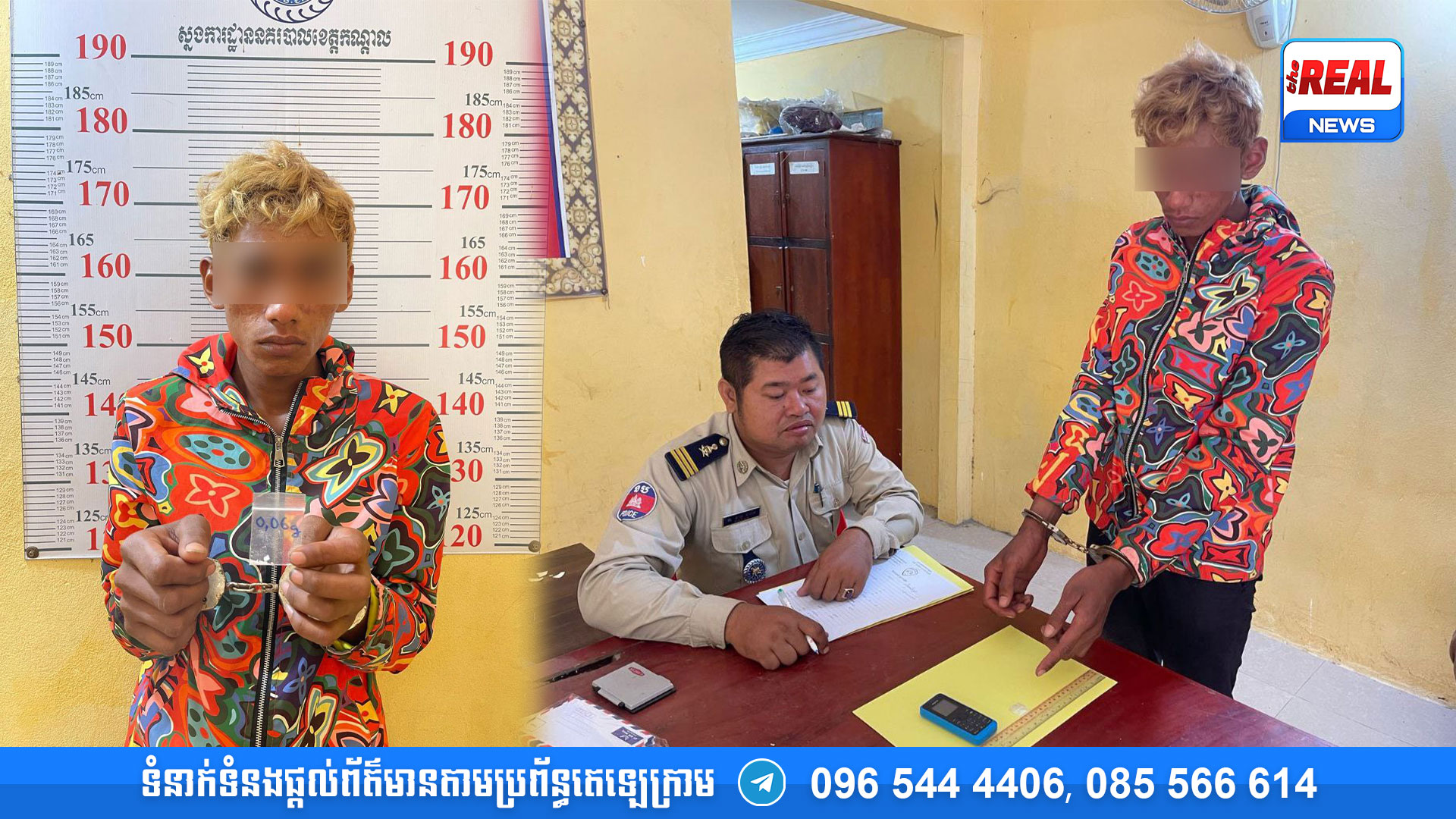 ជនសង្ស័យមានឈ្មោះ សាន សិទ្ធ ភេទប្រុស អាយុ ១៩ ឆ្នាំ មានទីលំនៅភូមិព្រែកថ្មី ត្រូវបានសមត្ថកិច្ចឃាត់ខ្លួន។ រីឯវត្ថុតាងដែលត្រូវបានចាប់យក៖