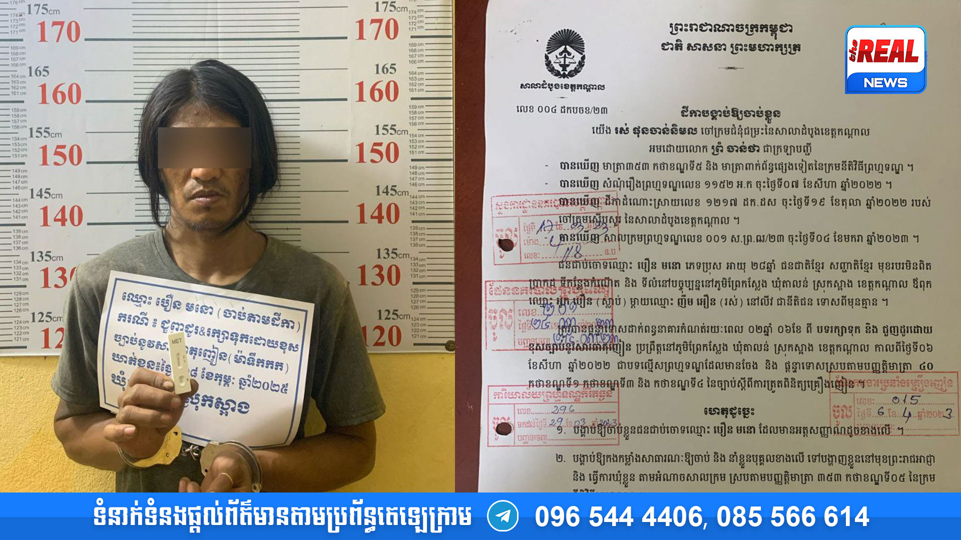 ជនសង្ស័យមានដីកាបង្គាប់ឲ្យចាប់ខ្លួន ចំនួន៤ ពាក់ព័ន្ធនឹងបទល្មើស ជួញដូរ រក្សាទុក និងប្រើប្រាស់សារធាតុញៀន។ ការពិនិត្យទឹកនោម វិជ្ជមាន (+)។