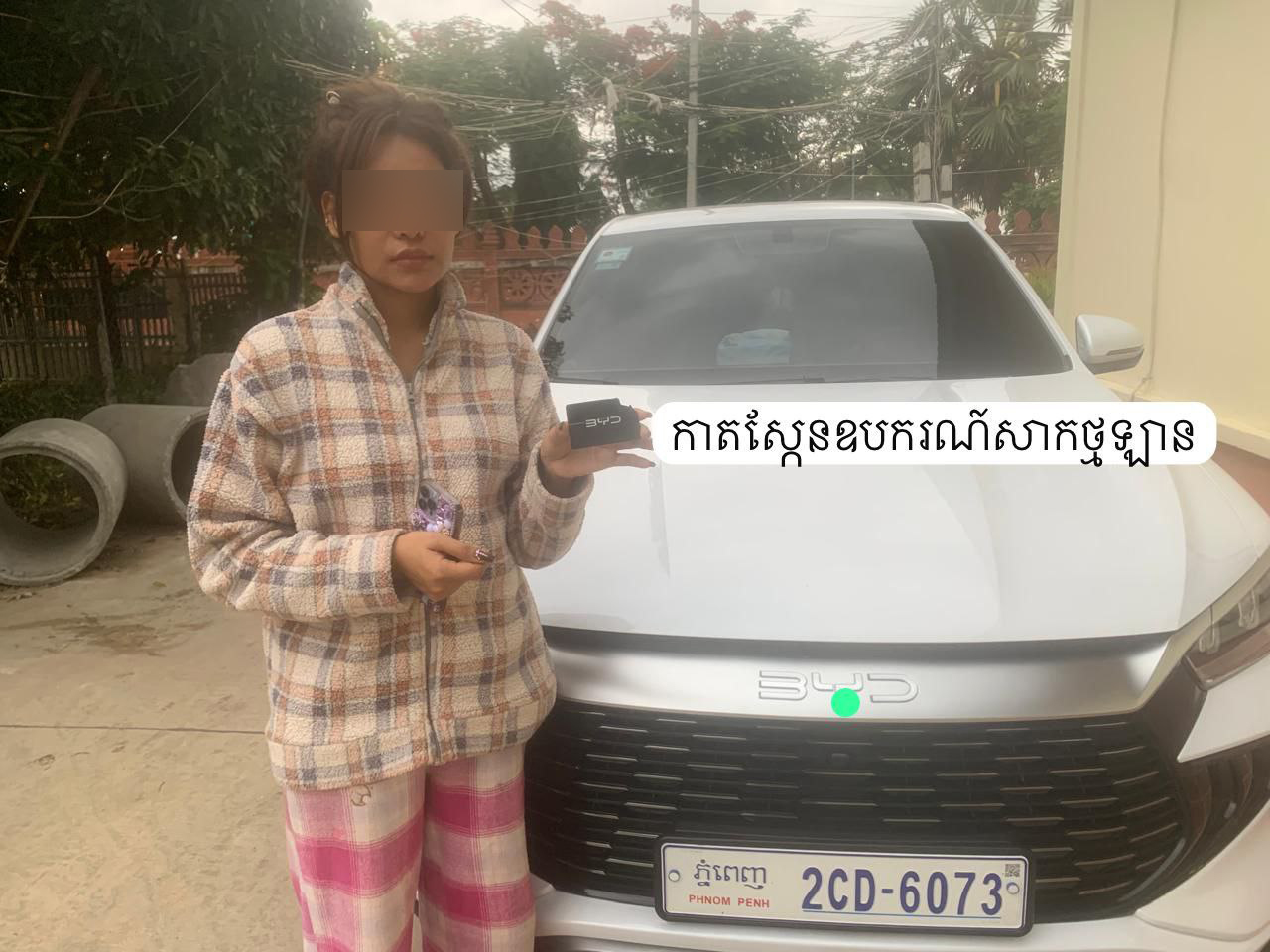 វត្ថុតាងដែលសមត្ថកិច្ចចាប់យកបានរួមមាន កាតសម្រាប់ដោតសាកថ្មរថយន្តម៉ាក BYD ពណ៌ខ្មៅ ឆេះខ្លោចបន្តិចចំនួន ១ (របស់ជនរងគ្រោះ) និងដែកដេះពណ៌ក្រហម ១ (របស់ជនសង្ស័យ)។