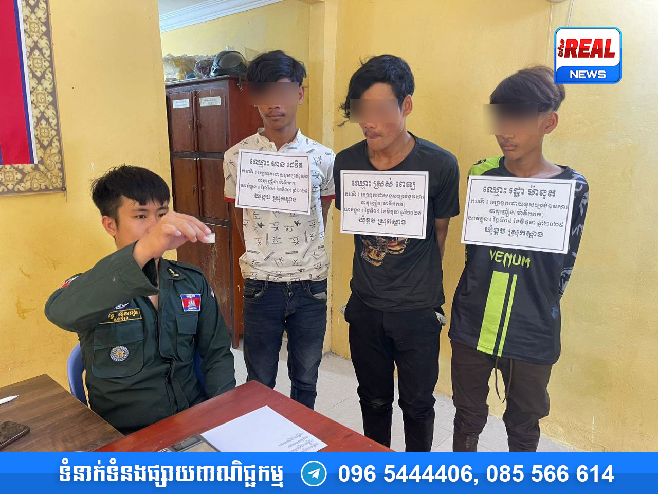 នគរបាលស្រុកស្អាង ឃាត់ខ្លួនជនសង្ស័យ ៣នាក់ ពាក់ព័ន្ធករណីរក្សាទុក និងប្រើប្រាស់គ្រឿងញៀន