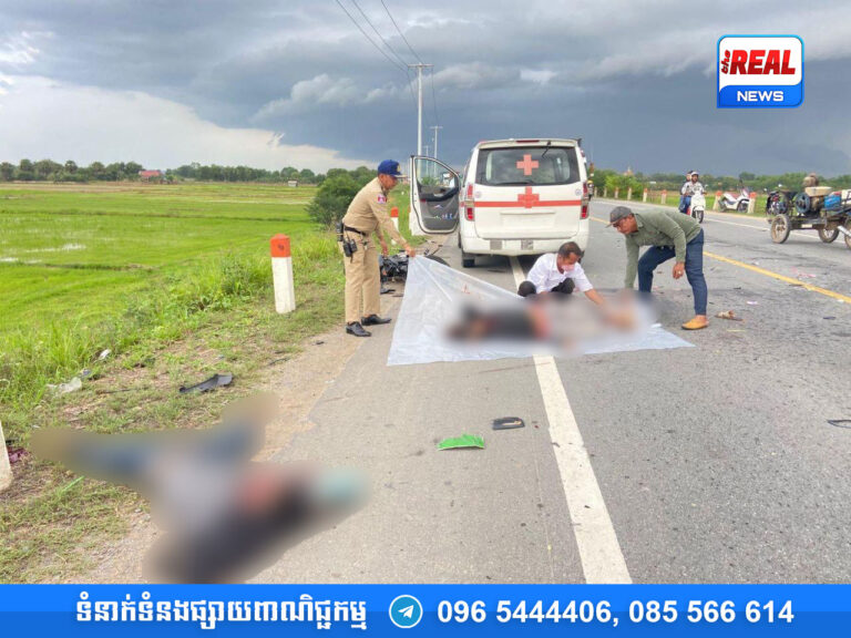 ខេត្តកណ្ដាល៖ ហេតុការណ៍គ្រោះថ្នាក់ចរាចរណ៍ដ៏សង្វេគមួយ បានឆក់យកជីវិតយុវជន ២នាក់ ភ្លាមៗនៅកន្លែងកើតហេតុ។ ករណីនេះបានកើតឡើងនៅថ្ងៃទី៥ ខែមិថុនា ឆ្នាំ២០២៥ វេលាម៉ោង ១៦:០៥នាទីរសៀល នៅលើផ្លូវជាតិលេខ១២A គីឡូម៉ែត្រ០.០១ ចំណុចភូមិកណ្តាលលើ ឃុំបន្ទាយដែក ស្រុកកៀនស្វាយ ខេត្តកណ្ដាល។