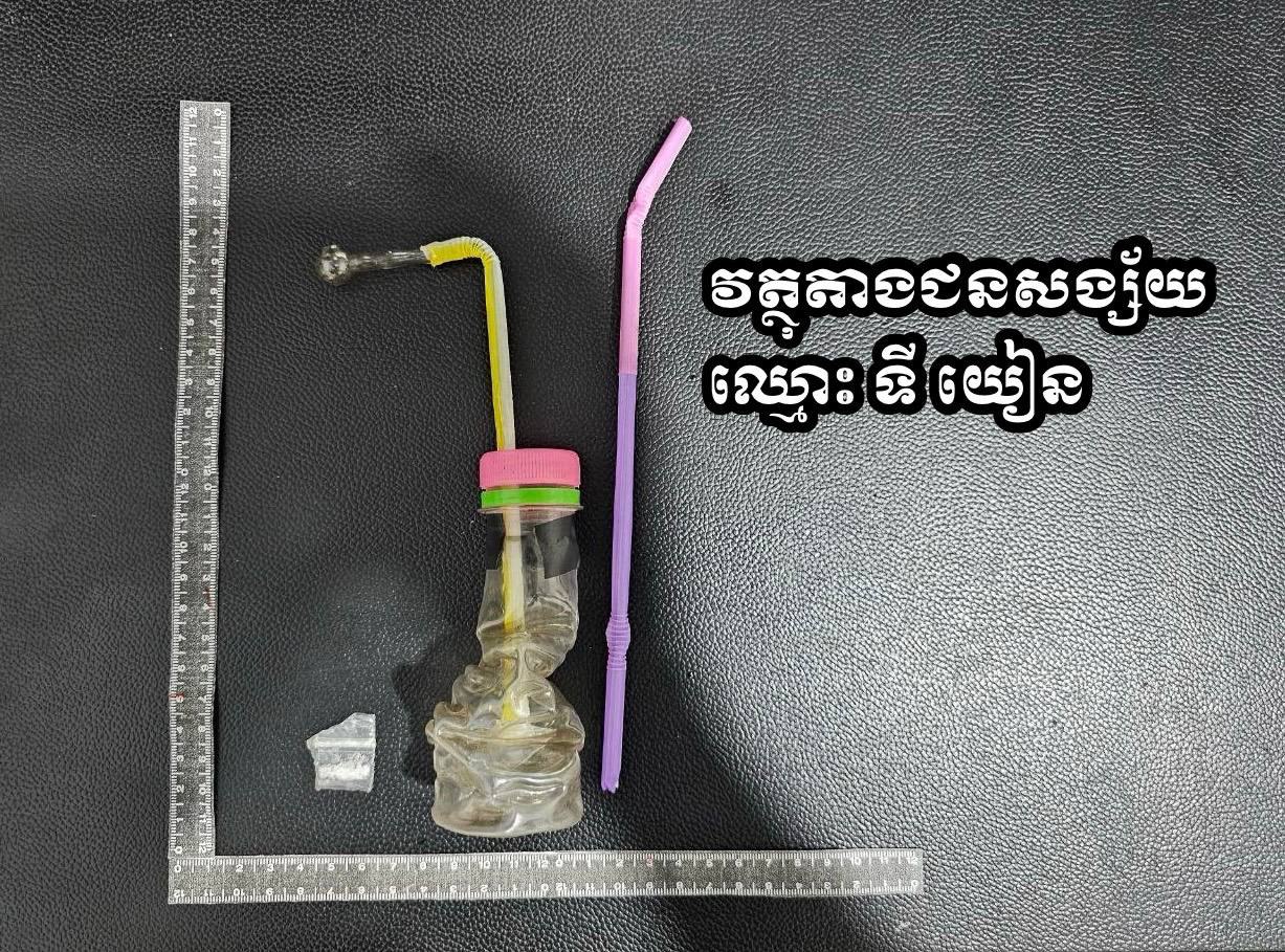 រីឯវត្ថុតាងចាប់យកនៅកន្លែងកើតហេតុរួមមាន៖ ថ្នាំញៀនប្រភេទមេតំហ្វេតាមីនសរុប ០១កញ្ចប់តូច ទម្ងន់ ០,០៣ក្រាម និងសម្ភារៈប្រើប្រាស់ថ្នាំញៀនមួយចំនួន។